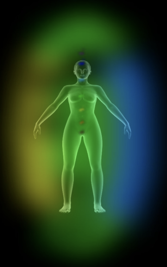 Diese Darstellung zeigt eine Momentaufnahme der Aura und der Chakren – ein aktueller Ausdruck dessen, was innerlich präsent ist. Die vorherrschenden Grün-, Gelb- und Blautöne sowie die stärkere Aktivität in den oberen Chakren weisen auf Themen wie Selbstwahrnehmung, innere Klarheit, Ausdruck und persönliche Entwicklung hin.