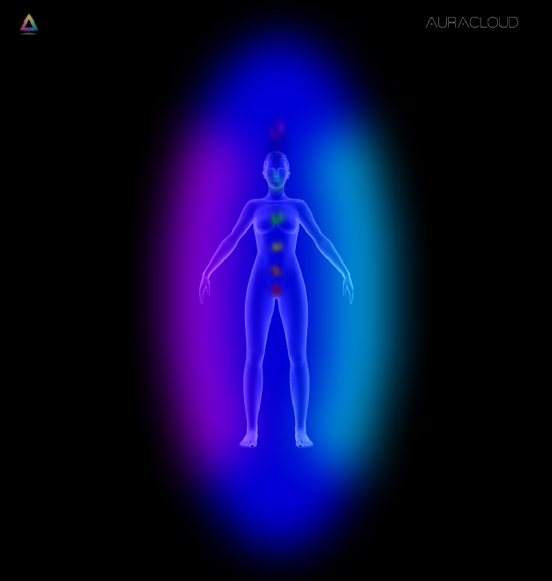 Intensives Violett zeigt starke innere Prozesse, Transformation und Sensibilität. Gleichzeitig wirkt die Aura gesammelt und klar ausgerichtet.